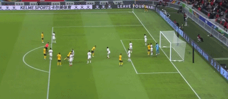 随后澳大利亚右路阿特金森下底传中欧文点球点附近头球顶偏了。↓