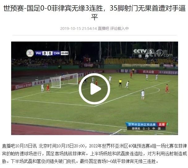 今天晚上结束的足球比赛,中国队客场0:0逼平 菲律宾 ,大家如何看待?个人观点,国足仿佛又回到了以前,回到了那个总么踢都踢不进球的时代,球迷看着国足场上很揪心的时代!世界杯预选赛第三轮,国足客场0:0被菲律宾逼平,整场比赛...结...