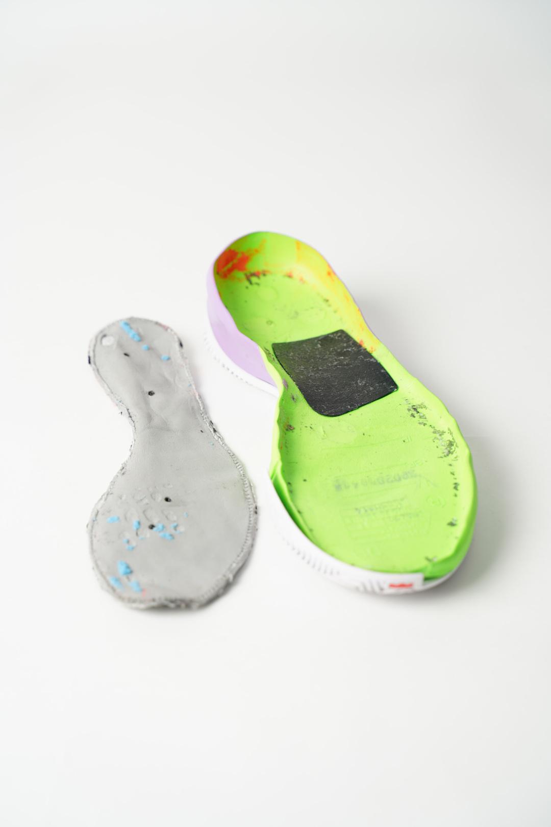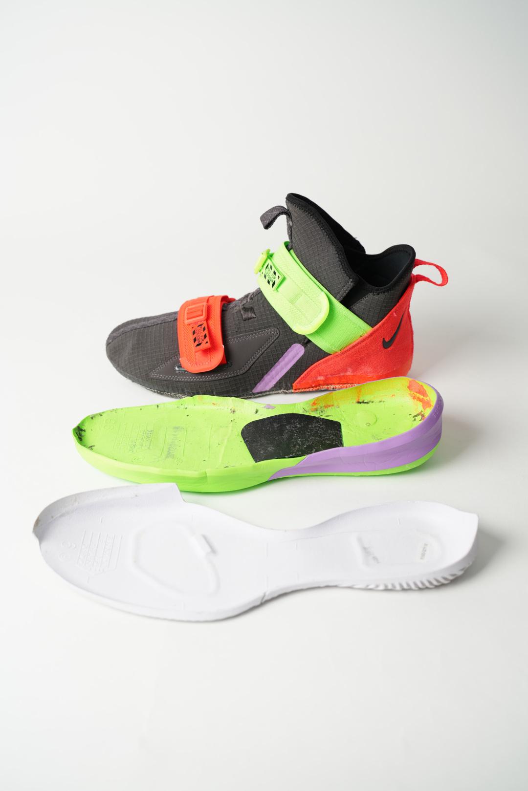 将球鞋外底和中底材料分开,看到最后的科技配置。