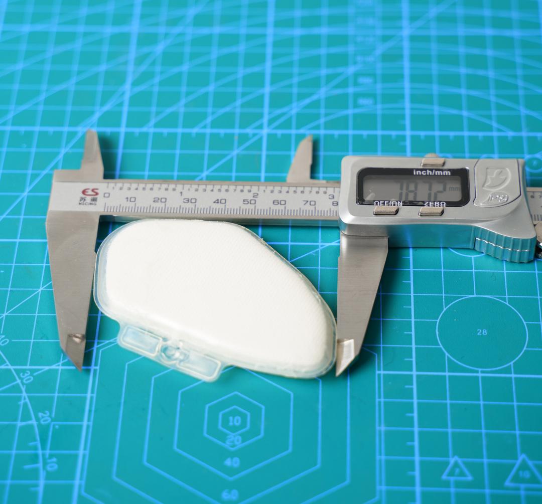后掌小马蹄形ZOOM摆放方式测量:有效长度62.89mm,宽度44.18mm,厚度14.19mm