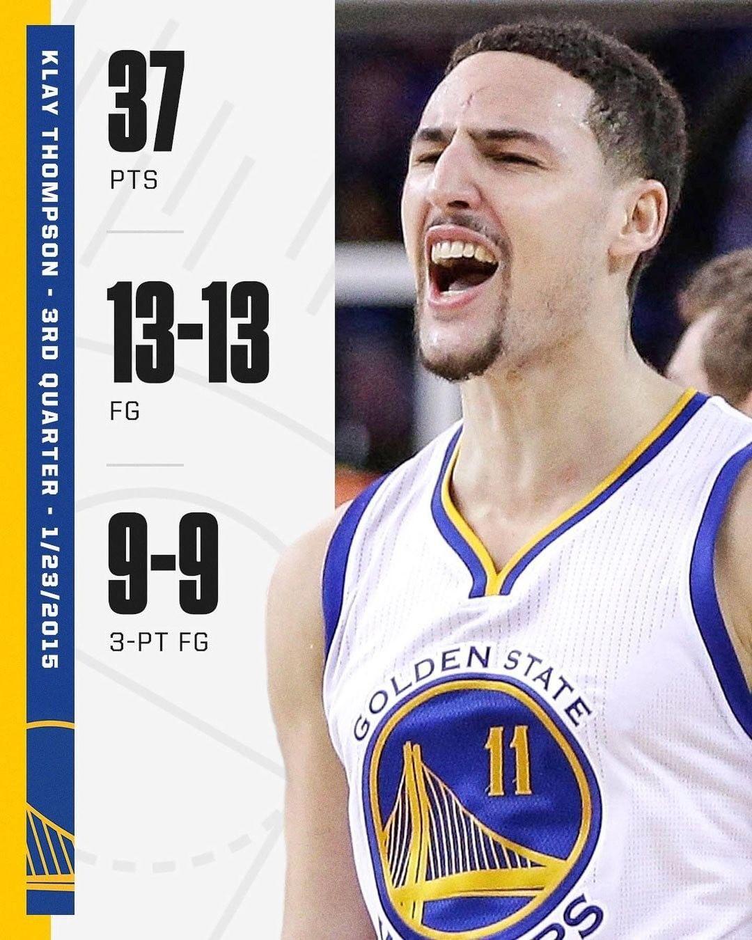是役第三节,克莱打满12分钟13投13中,其中三分9中9、罚球2中2,狂轰37分1助攻2抢断;