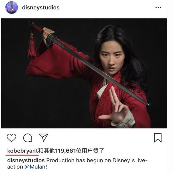 科比为刘亦菲版《花木兰》定妆照点赞
