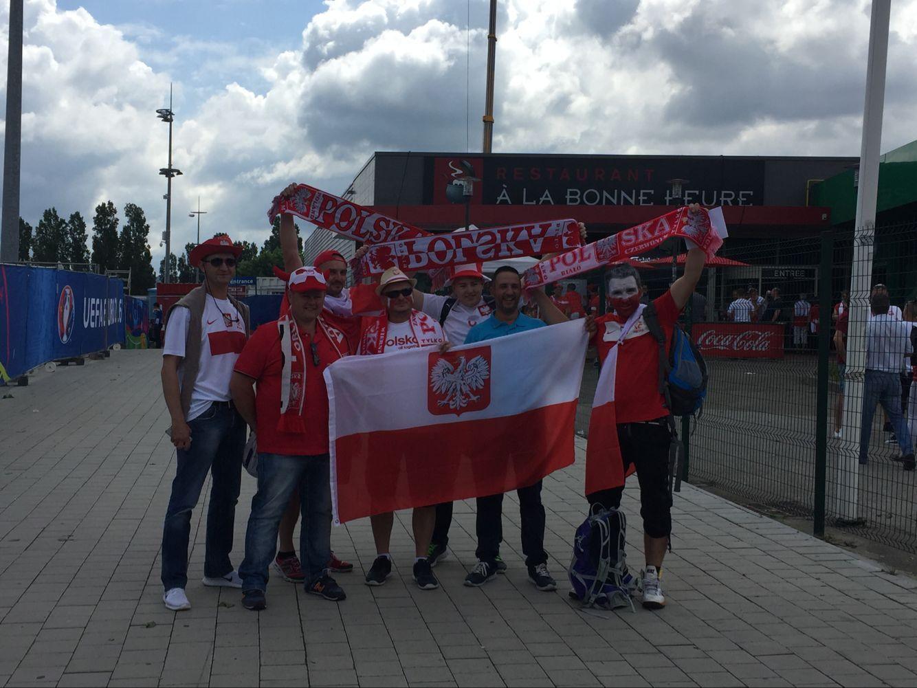 瑞士球迷和波兰球迷在魔鬼主场营造出了火热的气氛。瑞士的球迷主要占据左侧球门的一个半看台,波兰球迷和他们隔门相望。值得一提的是,由于瑞士和波兰都有红色球衣,所以尽管波兰本场比赛穿的是白色球衣,还是有很多波兰球迷穿的红色球衣前来观战。这也导致两队球迷混坐在一起的时候,晃眼一看很难分别谁是波兰球迷谁是瑞士球迷。
