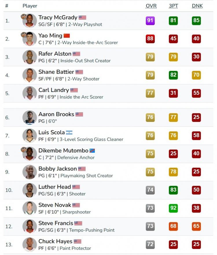 在2K系列最为基础的“快速比赛”模式中,玩家们除了可以选择当前赛季的各支球队,还能选择许多经典球队。今天我们给大家介绍的球队是07-08赛季的火箭。