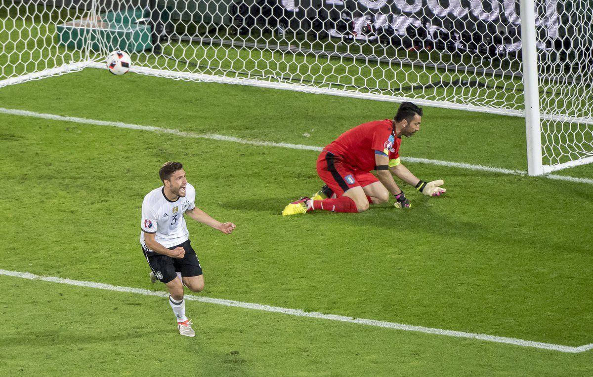 原本德国队可以在九十分钟内结束战斗,谁能料到博阿滕高举双臂为意大利带来了一粒点球,“神锋”博努奇一蹴而就,诺伊尔也无可奈何。