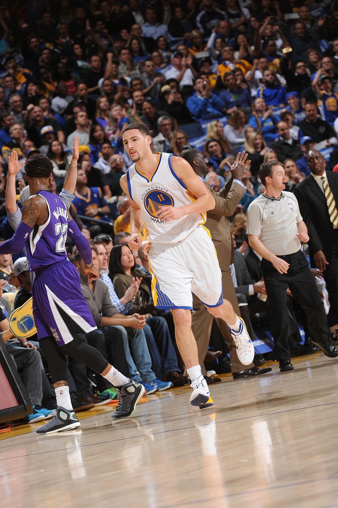遥想当年——2015年1月24日勇士主场迎战国王,克莱曾奉献单节37分的神迹表演:
