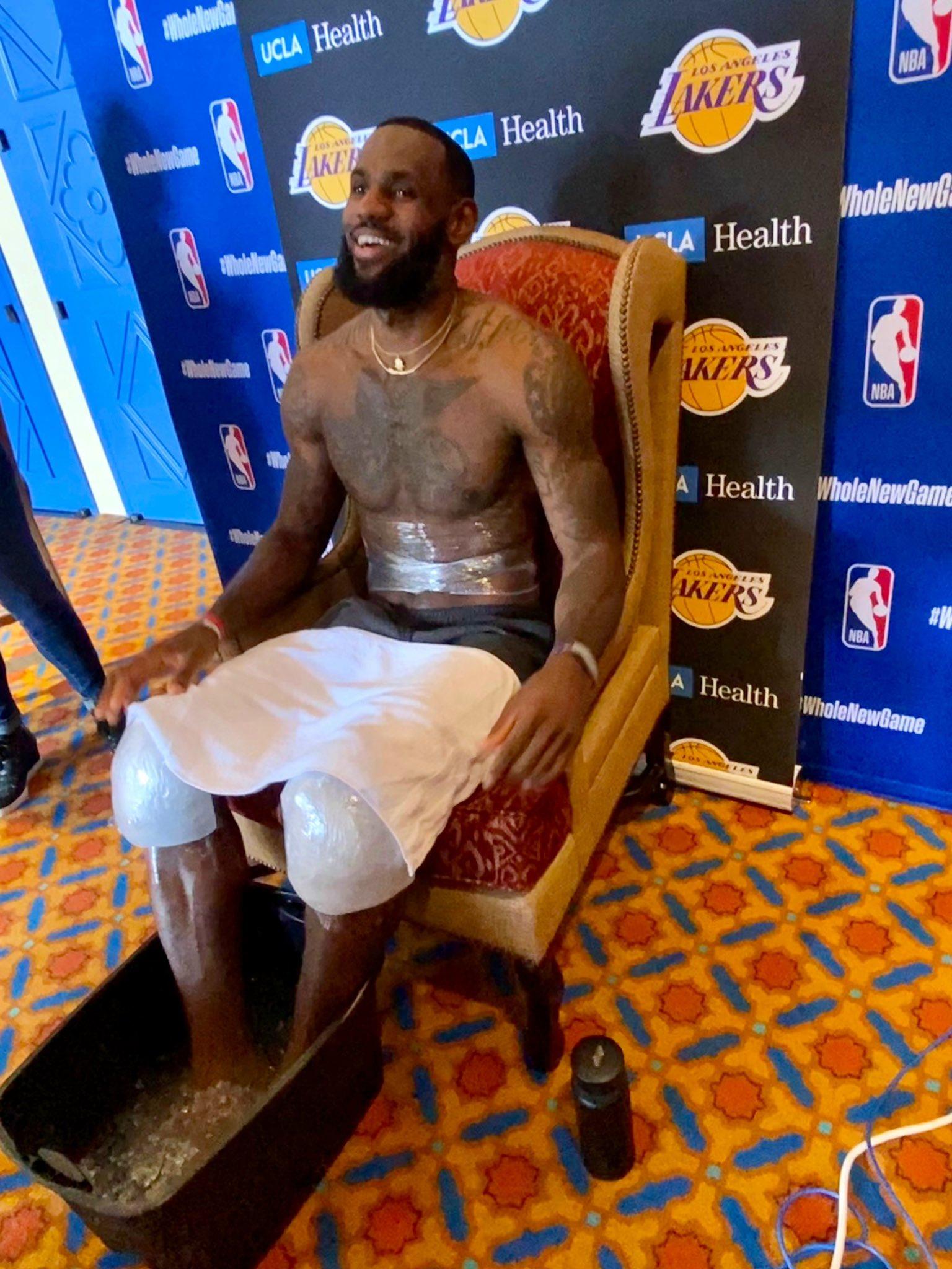 7月29日消息,今天,湖人当家球星勒布朗-詹姆斯坐在“铁王座”上接受采访引发热议。而据美国媒体记者爆料,当时,詹皇是自己来回搬运冰桶来冰敷双脚,没有麻烦球队工作人员。