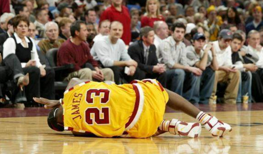 三年级的詹皇也饱受伤病困扰。那一年他先是在季前赛拉伤了自己的胸肌,随后又弄伤了自己的肋骨,而且脚筋的伤势也持续了一阵个赛季从没间断。到了赛季末,又不小心弄伤了自己的左脚踝。