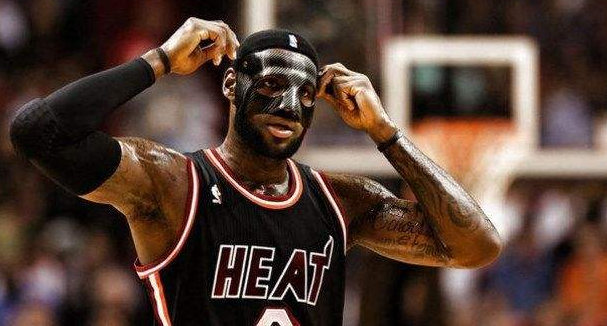 咱们先说说詹姆斯的脸。还记得詹姆斯狂砍60+的经典比赛吗?在那场比赛詹姆斯因为鼻骨骨折,佩戴了一个非常酷炫的面具,这个碳纤维的黑色面具往脸上一戴,看上去就像一个超级大反派!简直酷到不行!
