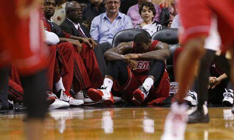 在热火的最后一个赛季,是詹姆斯受伤最多的一年。这一年中他的背部痉挛不断复发、左脚踝两次扭伤、腹股沟拉上、鼻骨骨折、右脚踝和左肩的伤病也一直让他饱受折磨。可是为了球队,他仍然上场76次,并且带领球队杀到了总决赛。
