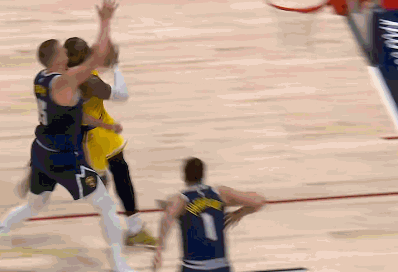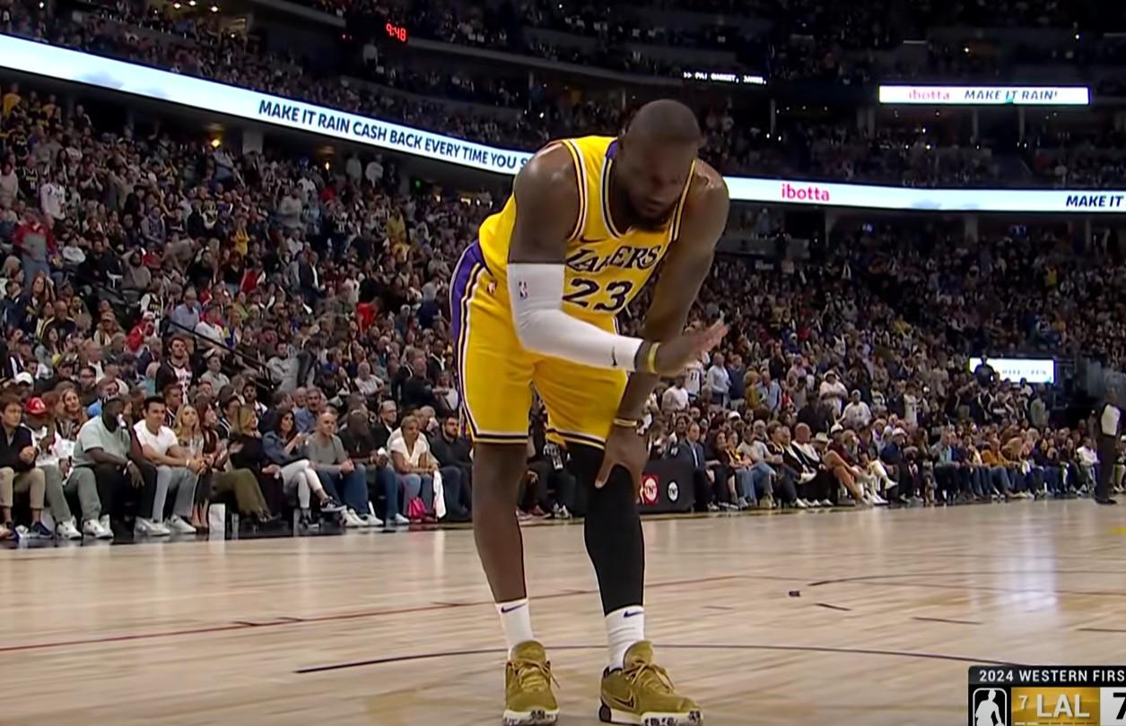 北京时间4月30日,NBA季后赛西部首轮G5,3-1领先的掘金主场迎战湖人。比赛第三节,詹姆斯在完成一次上篮后落地时脚部疑似扭到,但在缓了一会后示意不用被换下,继续留在场上。
