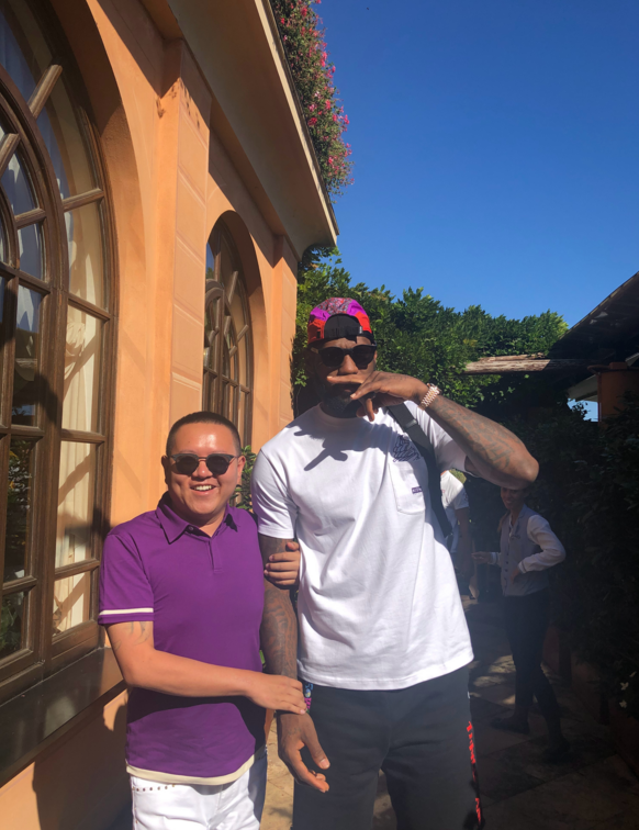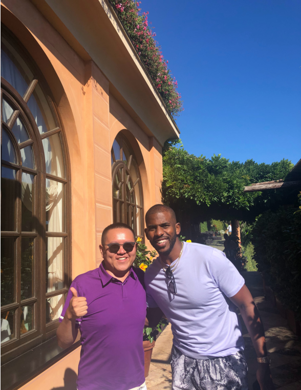 有中国游客正好在当地度假,幸运地获得了与詹皇合影的机会。
