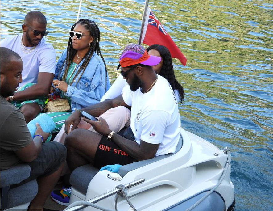 随后,詹皇保罗夫妇坐上了一条快艇,离开小镇前往下榻酒店。