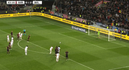 菲尔克鲁格亲自主罚点球,他右脚推射骗过门将卡斯特尔斯将球打进球门左下角,德国队1-2比利时队。这是菲尔克鲁格第6场国家队比赛打进的第6球。 上半场结束,比利时队暂时领先。