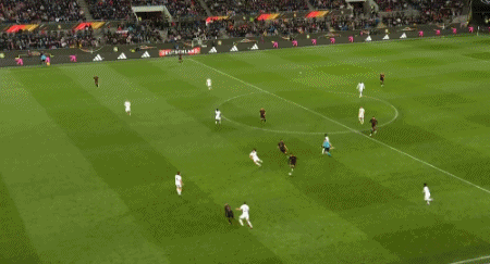 第18分钟,卢克巴基奥挑球过人,从中场一路长驱直入,单刀球面对特尔施特根推射偏出立柱。↓