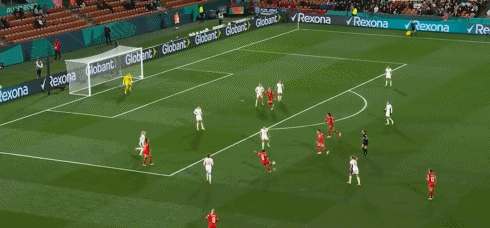 第76分钟,挪威女足前场右侧连续内切摆脱,随后射门被塔尔曼扑出,近距离小角度补射再次被塔尔曼扑出。