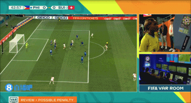 第42分钟,瑞士获得点球!孔巴-索乌禁区拿球被科沃特踢倒,裁判经过var提示判罚点球,随后巴赫曼主罚点球破门,菲律宾女足0-1瑞士女足。↓