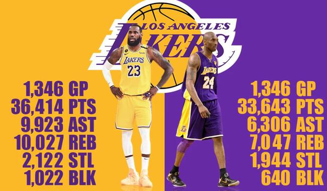 北京时间2月2日,明天才会有湖人队的比赛,根据球队主教练沃格尔的透露,勒布朗-詹姆斯因为膝盖肿胀的缘故,明天大概率不会出战。碰巧的是,詹姆斯职业生涯至今一共打了1346场比赛,正好与科比-布莱恩特持平,对此美国著名媒体Fadeaway World就对比了他们两人的五项基础数据,下面让我们来简单了解一下。