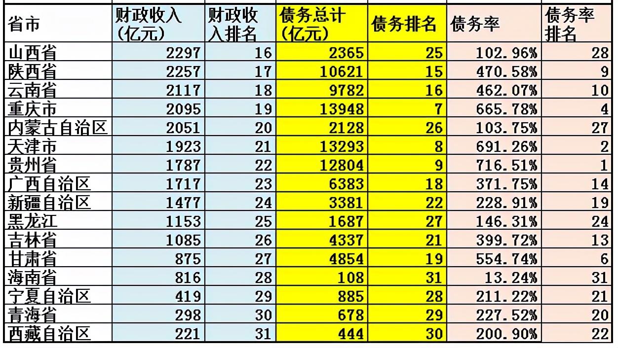 2020年黑龙江省财政收入1153亿元,位列中国第25;债务总计1687亿元,位列中国第27;债务率146.31%,位列中国第24。