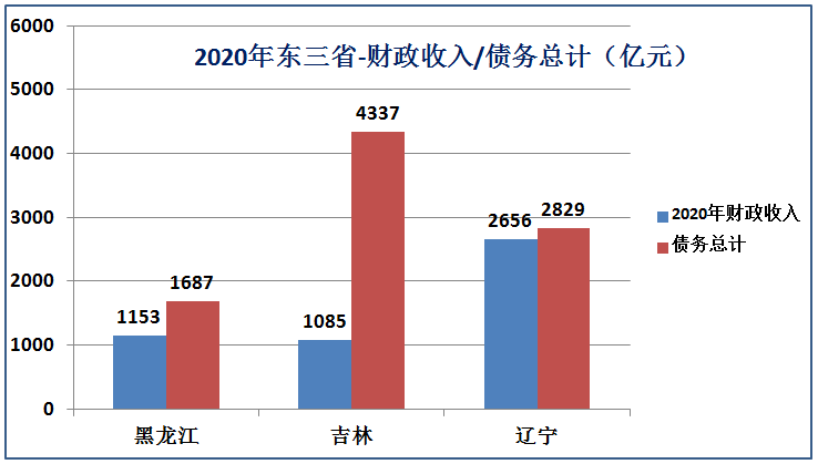 8.东三省 黑龙江省Vs吉林省Vs辽宁省:2020年财政收入和债务总计