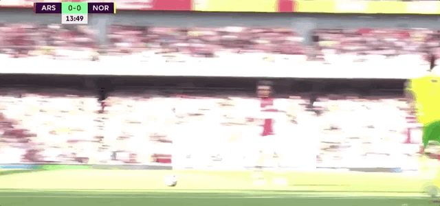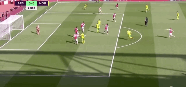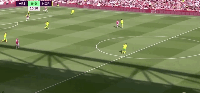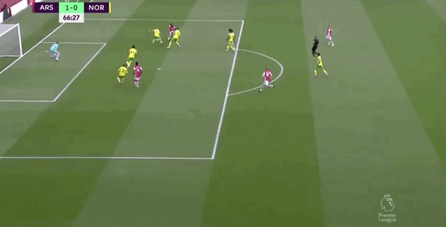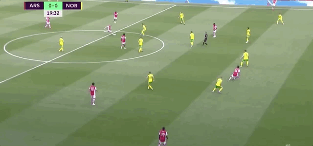 第54分钟,奥巴梅扬靠个人能力右路强突,汉利一对一贴身防守将球破坏。第56分钟,蒂尔尼左路横传,奈尔斯禁区前直塞,萨卡转身打门被诺维奇后卫封堵。第57分钟,奈尔斯中场挑传,奥巴梅扬左路狂追拿到球,踩单车突入禁区回敲,萨卡禁区左侧抽射被封挡,后点佩佩的推射被威廉姆斯挡出。