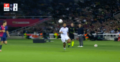 第43分钟,巴萨打出角球配合,佩德里传中踢高
