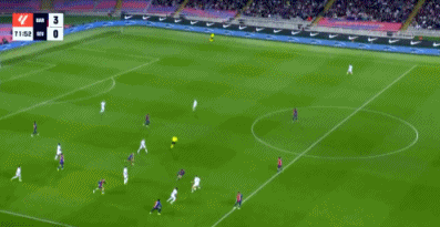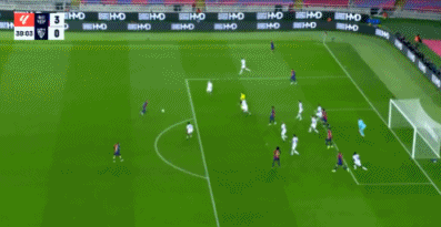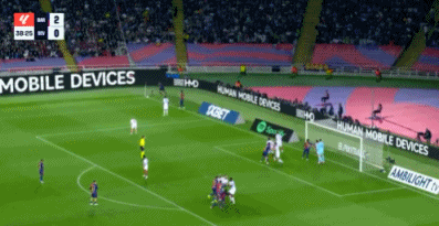 第39分钟,巴萨开出角球,第一点被门将击出,禁区前沿拉菲尼亚迎球爆射!门前的莱万伸出一脚将球挡进球门!巴萨3-0塞维利亚。
