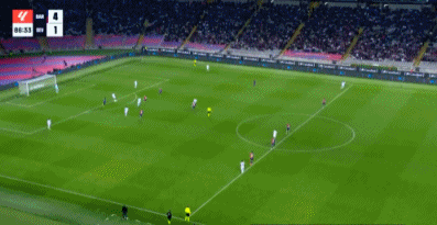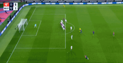 第88分钟,巴萨前场左侧的任意球,托雷主罚,皮球路线上所有人都没有碰到!皮球直接兜进了球门后角!巴萨5-1塞维利亚。