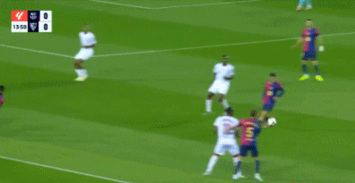 第45分钟,拉菲尼亚传球,亚马尔低射近角打偏