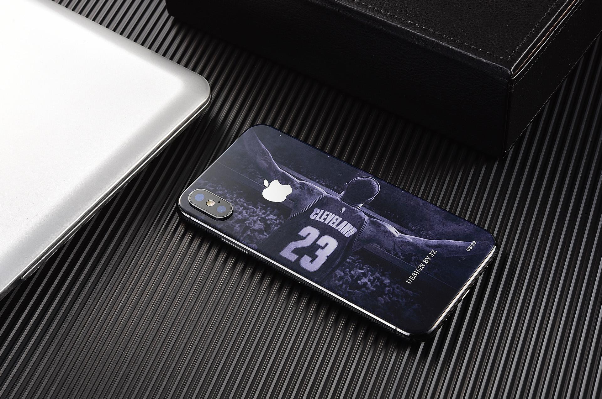 匠臻定制早在iPhone X推出的时候就曾推出过一款詹皇定制版,该定制版的定制元素主要就在于其背部玻璃的配图采用了当时骑士主场球馆外的巨幅詹皇海报,相信只要是詹皇的资深球迷都应该对这幅海报印象深刻吧,匠臻定制的设计师们采用横向摆放的方式将其整张融合进了iPhone X的背板。