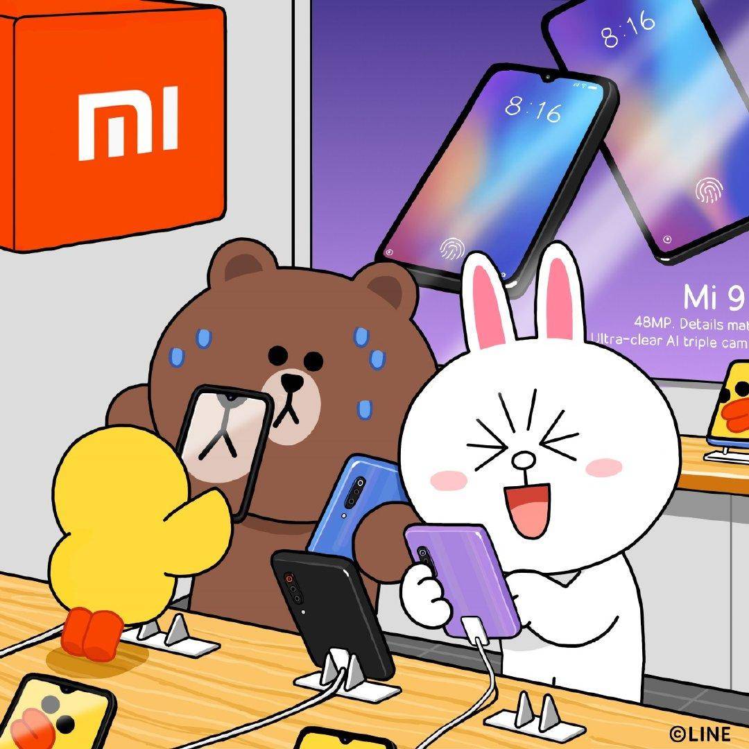 随后,小米手机的微博转发LINE中国微博证实了之一消息,从配图可以看到LINE的代表角色布朗熊、可尼兔和喜欢照镜子的自恋男詹姆斯。还有小米9的大幅海报。但是据王腾的微博消息可以肯定,这次的定制版就小米9SE没跑了。