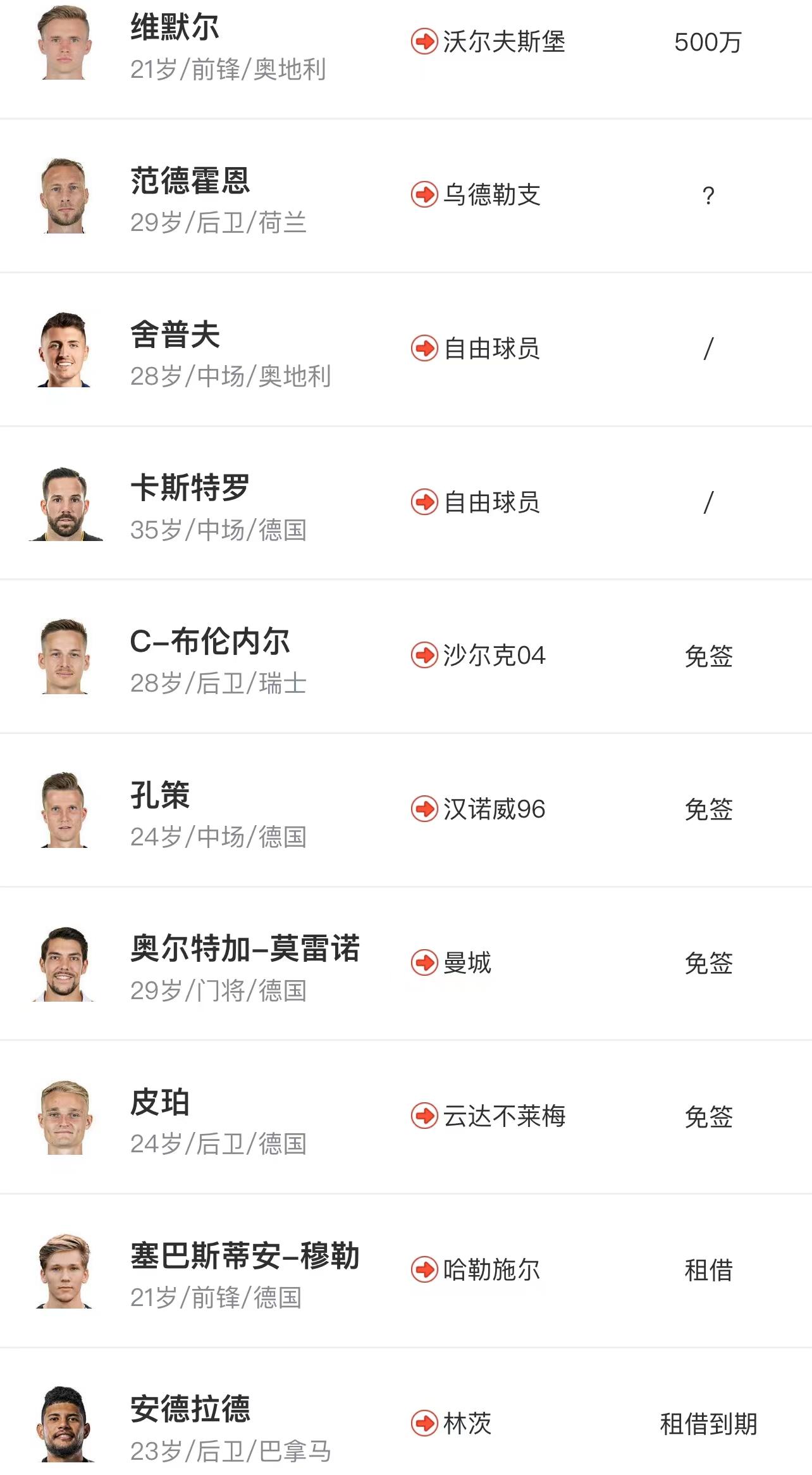 这里有份转会名单大家可以看一下,基本上全是主力。