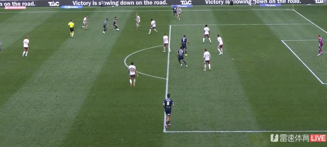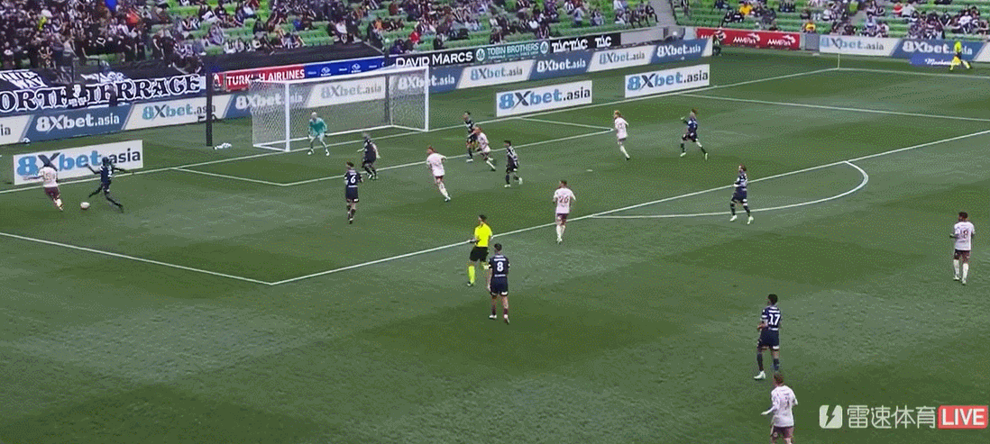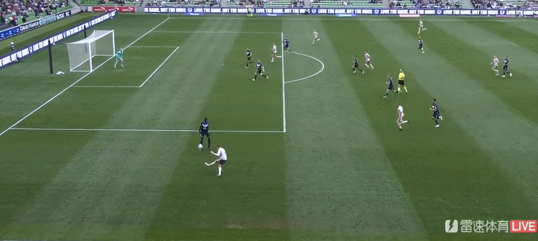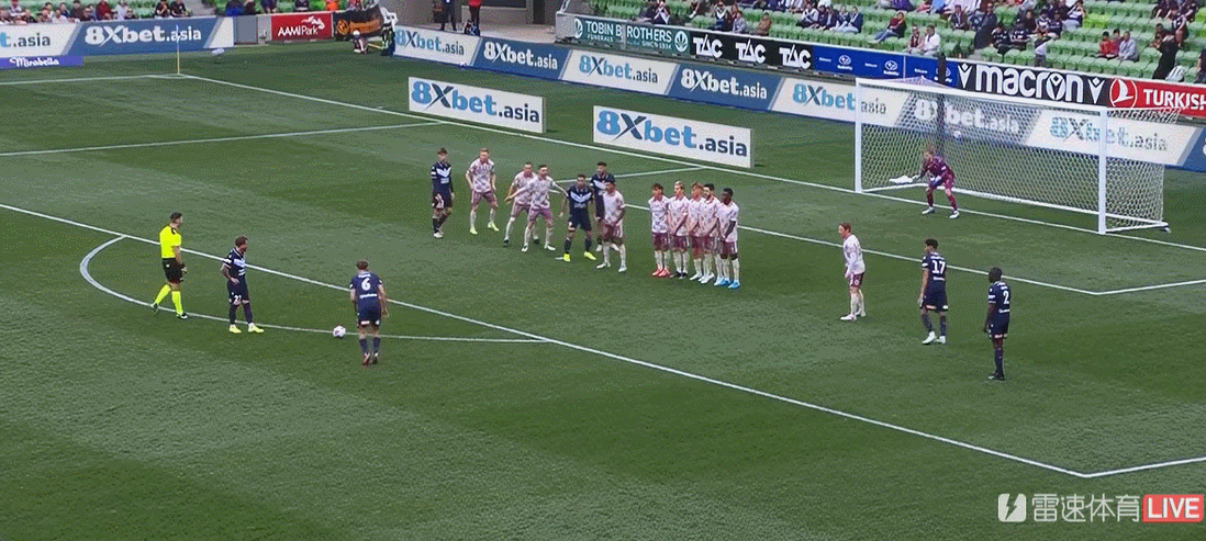 第6分钟,墨尔本胜利在禁区弧获得任意球,蒂格主罚起左脚射门,皮球打穿人墙擦柱而出。