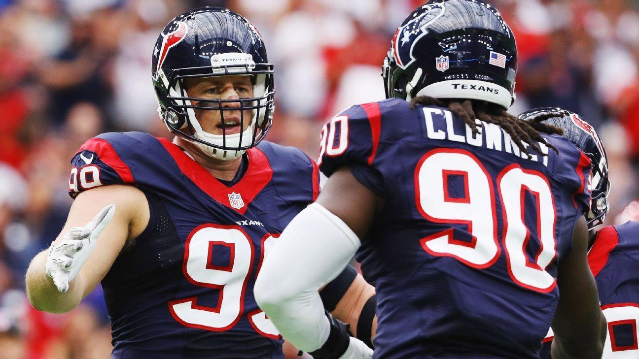 你该怎样阻挡一条拥有一名三次年度最佳防守球员,一名有着爆炸性的能力的曾经的状元和一位多功能的高能量的冲传手呢?这就是德州人的冲传依靠着J.J.瓦特(J.J.Watt),贾德维昂·克劳尼(Jadeveon Clowney)以及惠特尼·莫西鲁斯(Whitney Mercilus)给对手带来的挑战。他们能从防守锋线上你能想象到的各个角落对四分卫进行骚扰。无论是瓦特从他的传统的位置加速启动,克劳尼在外侧发起冲击,还是莫西鲁斯转身过掉中路无助的进攻锋线队员,休斯顿具有天赋的冲传三人组都能让需要面对这些破坏性的防守球员的教练们感到头疼。