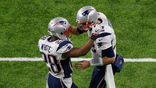 如果不是布雷迪完成了450码传球并且帮助球队逆转比赛,怀特很可能成为MVP,这个不知名的跑卫本场比赛14次接球推进110码获得3个达阵,包括加时赛的制胜达阵,显然怀特称得上是超级碗英雄。