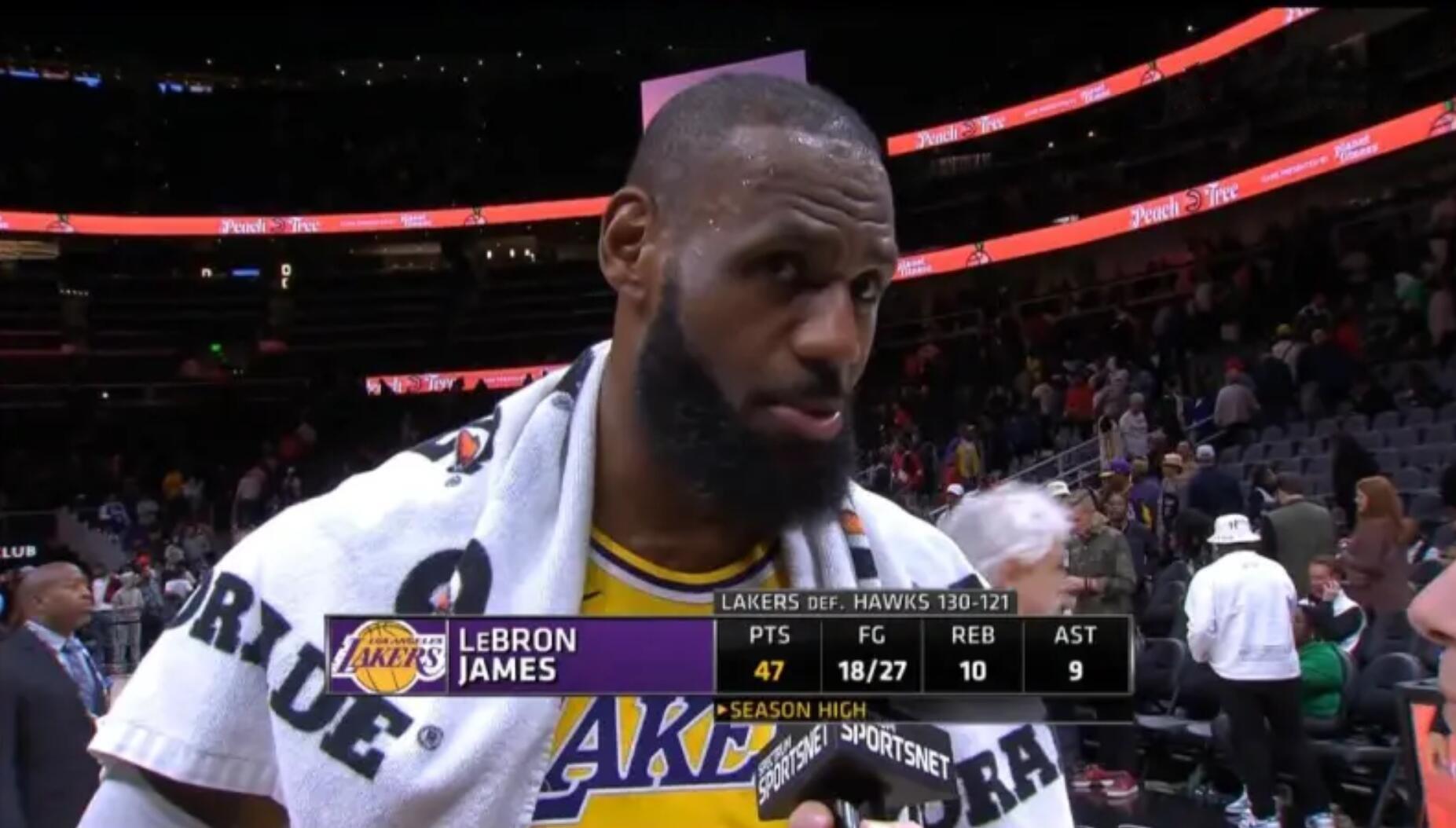 38岁生日夜,勒布朗-詹姆斯交了一份47分10篮板9助攻的豪华准三双答卷,成为NBA历史上,除了乔丹以外,又一个在38岁或以上时,单场砍下至少45分10篮板5助攻的球员。不过,在詹姆斯诠释“伟大”的同时,冲着镜头喊出“我是GOAT”的一幕,引到了极大的争议。