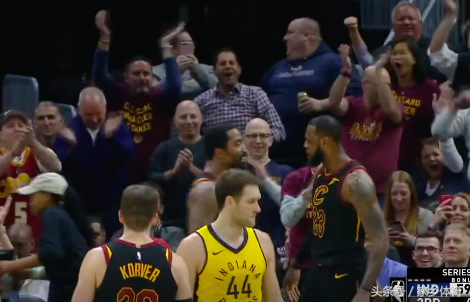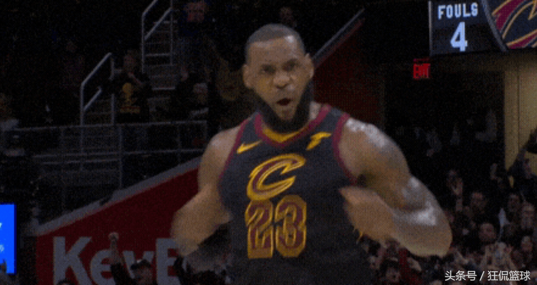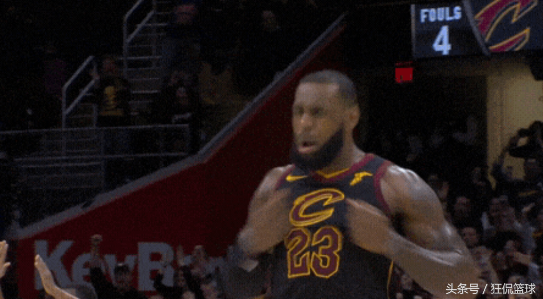 在又完成了一次杀伤得分后,詹姆斯兴奋的捶胸怒吼,和JR激情撞胸,还和现场2万名骑士死忠疯狂互动,下场休息还和队友们一一击掌庆祝。