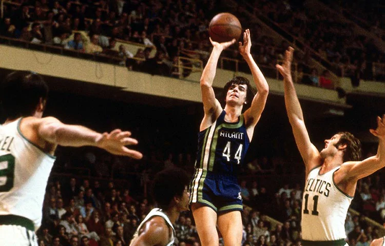 能传擅射,运球与传球的手法,堪称花巧刁钻。这一位先逝的篮球名宿,称得上是NBA第一代的华丽表演家。至于耳熟能详的【手枪】绰号,则是自大学以来,就跟随皮特。三年大学生涯共得分3,667,皮特·马拉维奇平均每场得分为44.2分。强大的个人火力,如同呯呯呯的枪声一般,故而得名。