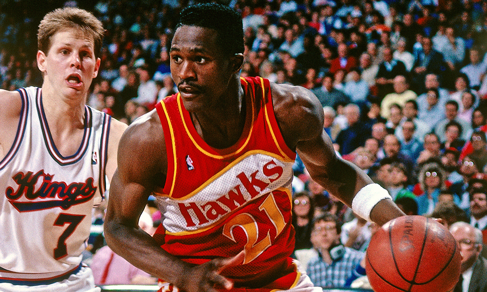 多米尼克·威尔金斯,NBA历史上扣篮最具观赏性的球员之一。华丽的技巧、充满爆发力、极其舒展的身体,每一记威尔金斯祭出的扣篮动作,都经得起每一帧慢镜回放的推敲,是以得名【人类电影精华】。