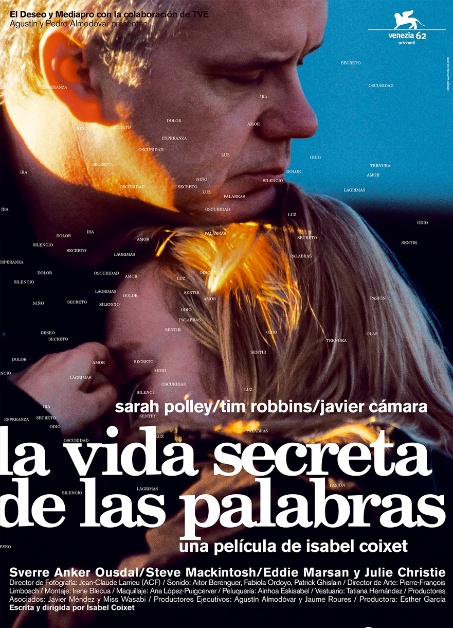 02《言语的秘密生活》2005 导演、编剧: 伊莎贝尔·科赛特主演: 萨拉·波莉 / 蒂姆·罗宾斯 / 斯威尔·安克·奥斯达 哈维尔·卡马拉 / 朱莉·克里斯蒂类型: 剧情 豆瓣8.3制片国家/地区: 西班牙 / 爱尔兰语言: 英语 / 丹麦语 115 分钟又名: 深心密语(港) / The Secret Life of Words