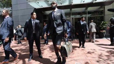 6月2日消息,据美国媒体The Undefeated报道,在总决赛第一场开赛前,詹姆斯身着西装短裤的搭配进入甲骨文球馆,据了解,这套装束由纽约设计师Thom Browne设计,这身行头的总价达到46964.95美元,这超过了30万元人民币。