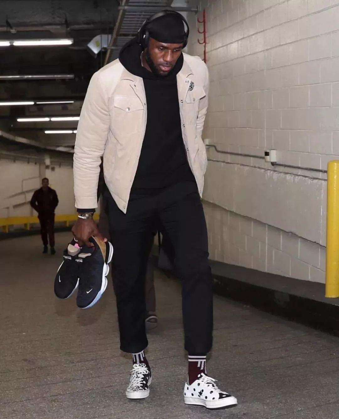 而詹姆斯作为 NIKE 终生代言人的好处,自然也少不了上脚一些未上市的新款球鞋,甚至是一些入手难度较高的PE去为全身的穿搭做搭配。不过一辈子只能穿Nike,也挺心疼老詹的,所以你能不时能看到老詹穿匡威的身影。