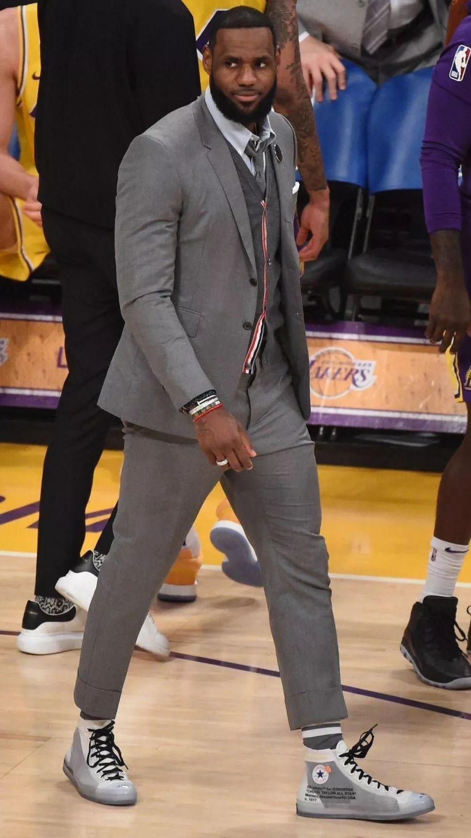而作为现役最具影响力的运动员——勒布朗-詹姆斯不仅球技出色,在赛场上制霸攻防两端,在场外生活中他也同样做到了完美,如今詹姆斯的商业帝国可谓遍布美国,而他的西装照不难看出,詹姆斯宛如一个成熟的商业精英。