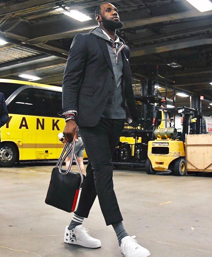 还有对于穿西服这件事上,老詹终于是找对了自己的风格, 你能看得到詹姆斯私下有多钟情与灰色之上。而把灰色做到极致的 Thom Browne 自然也变成了詹姆斯的最爱,并且总能把正式感强烈的西服混搭的高雅又时尚。