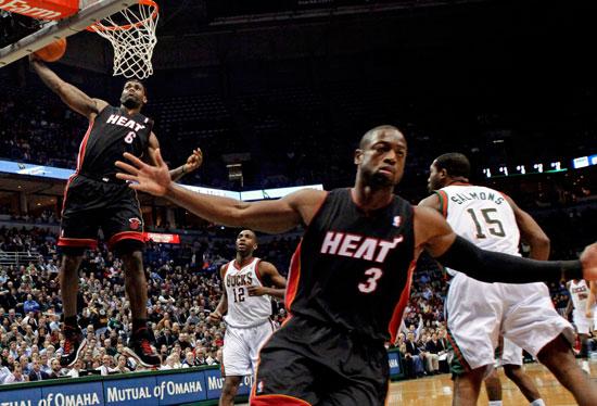 韦德先是右路一记突破抛投打板得到两分,接着又是他在同样的线路突破上篮打进并造成加罚命中。