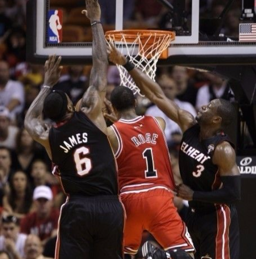 其实有一个场外小故事:当年詹姆斯想离开骑士的时候,已经是想和韦德联手了,但是最开始的地方并不是在迈阿密而是芝加哥,他们觉得罗斯这个小伙子非常不错。