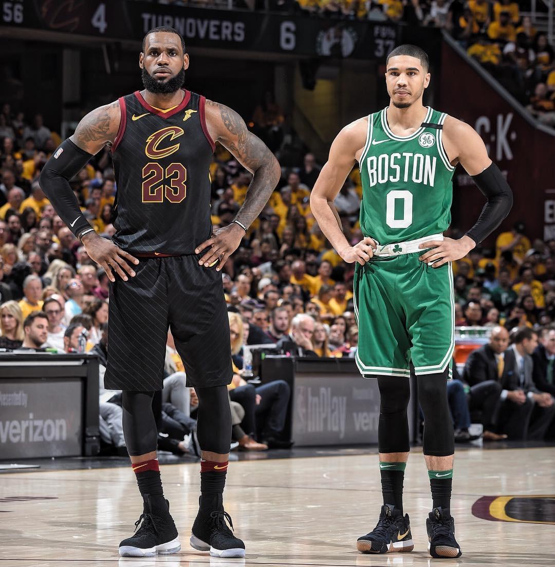 先看看詹姆斯和塔图姆的合照,当时两人的官方身高都是2米03,这显然与图片上所显示的情况不符,要么塔图姆没有2米03,要么就是詹姆斯高于2米03。没关系,我们可以再看看别的图片。