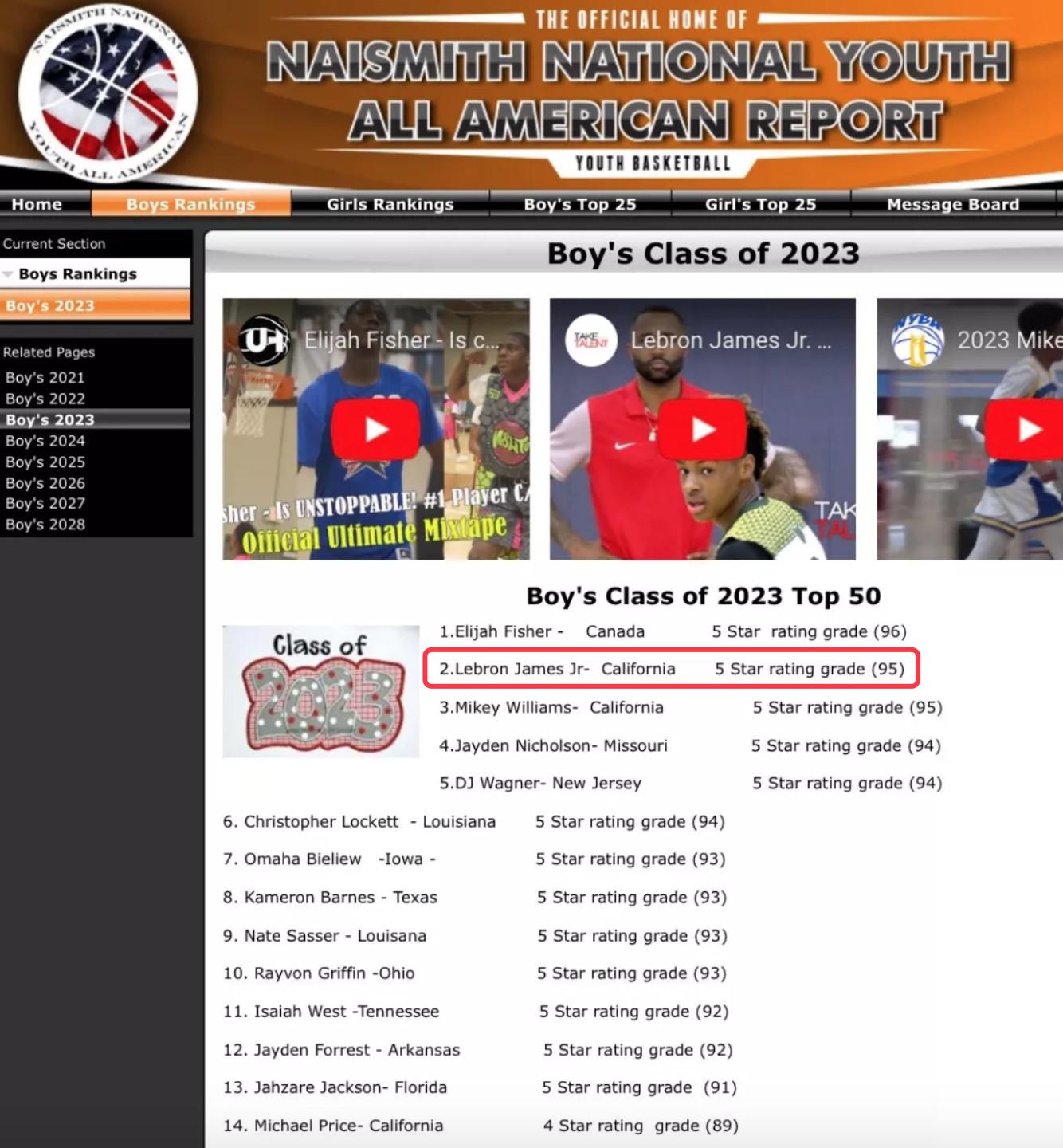 众所周知,年纪不到15岁的布朗尼,经历过多次篮球比赛的历练,从中成长不少,渐露巨星像。凭借这些赛事的积分以及自身实力的加成,布朗尼在美国篮球青少年的2023届所有球员里,排名第二。