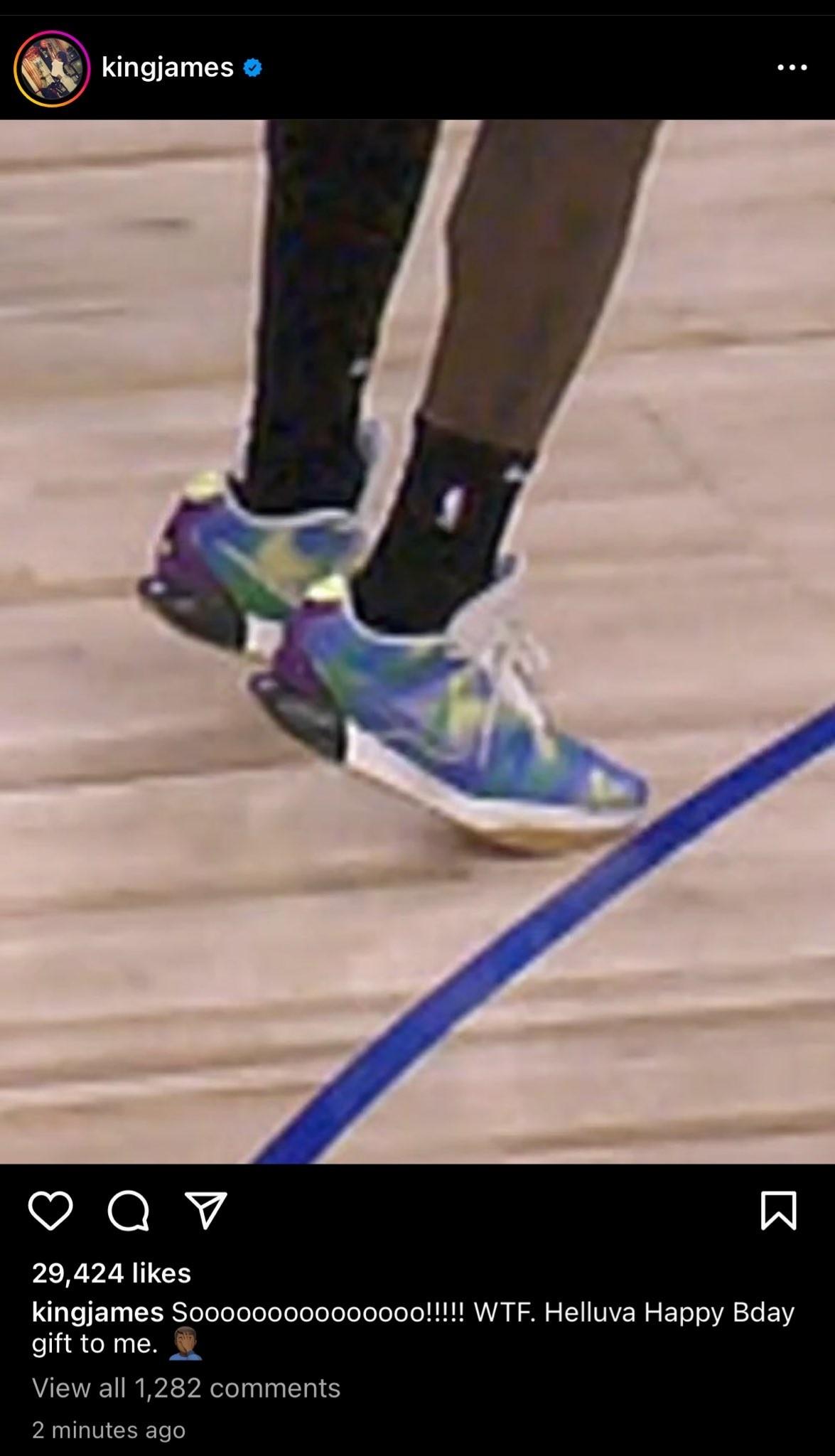 赛后詹姆斯更新社媒,发文吐槽道:“这这这这这这这这!!!!!WTF!!!好惊喜的生日礼物。”