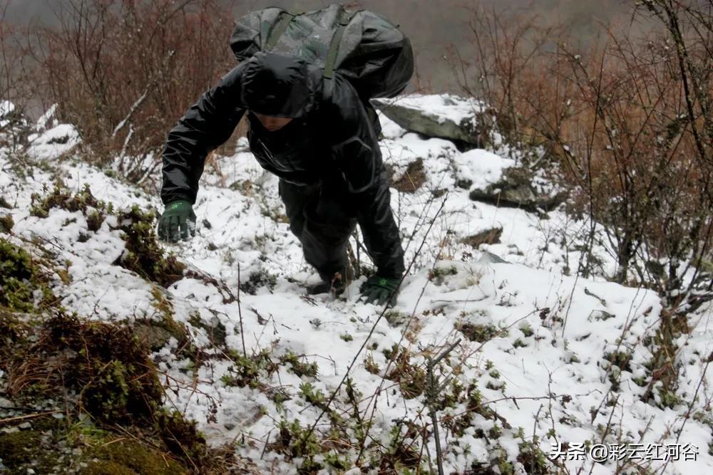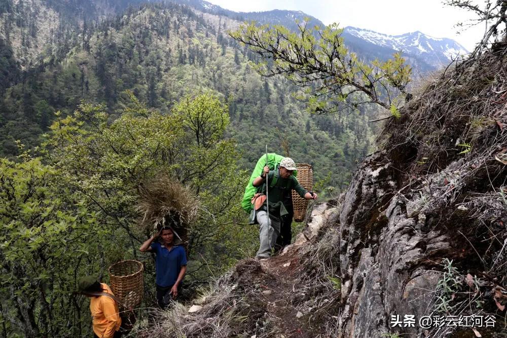 △监测过程中,研究人员背着柴米油盐等生活必需品负重前行(资料图,念南子 摄)